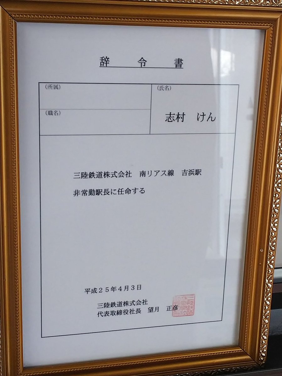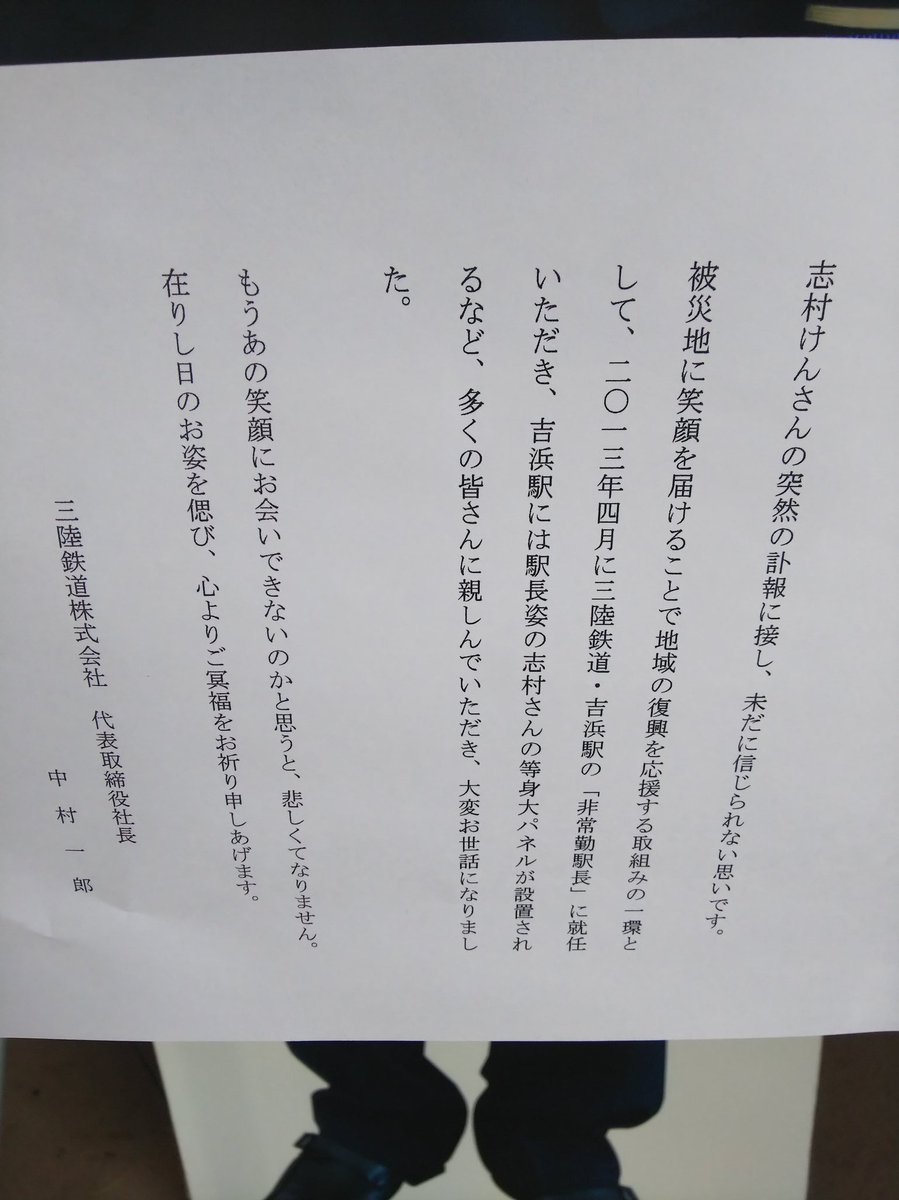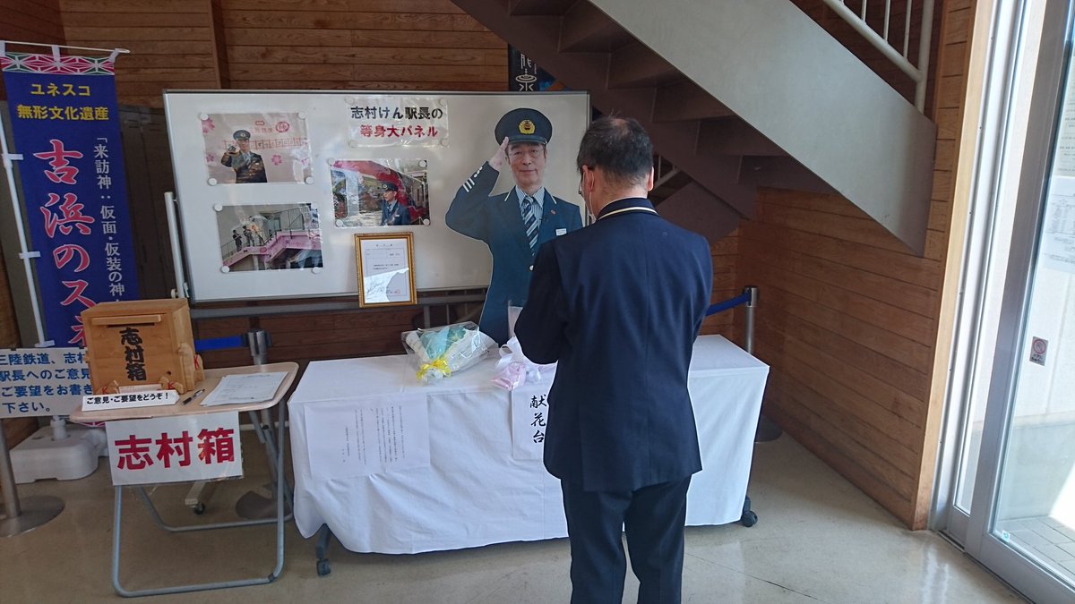#三陸鉄道 の #吉浜駅 で #非常勤駅長 として震災の被災地にも足を運んでくれました。ありがとう。 pic.twitter.com/VUmMqV4p2l
